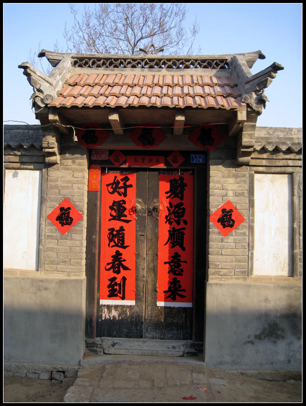 古老的村庄,绵长的梦想,延伸着火红的希望。这是几十年前我市民居的特色,随着时代的变迁,众多的大铁门取代了昔日的木头门,昔日的门廊顶部饰品,也成为了点缀,成为了历史。